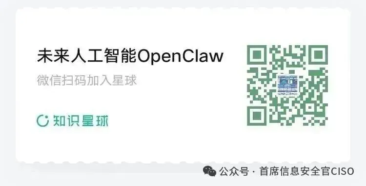 温馨提示:请通过”扫码”加入星球,获取更多OpenClaw资料,更多(网络信息安全、商业秘密保护、IT审计、安全与认证培训、AI新技术、自媒体等等...)资料合集。 ![]() |