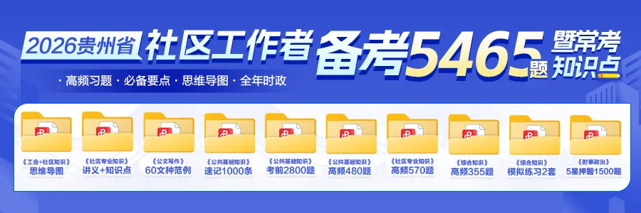 备考刻不容缓 适用于全年贵州社区工作者招聘 不要犹豫!赶紧学起来! 点击卡片关注,回复【社区资料】 获取贵州社区专项5465题+必备要点