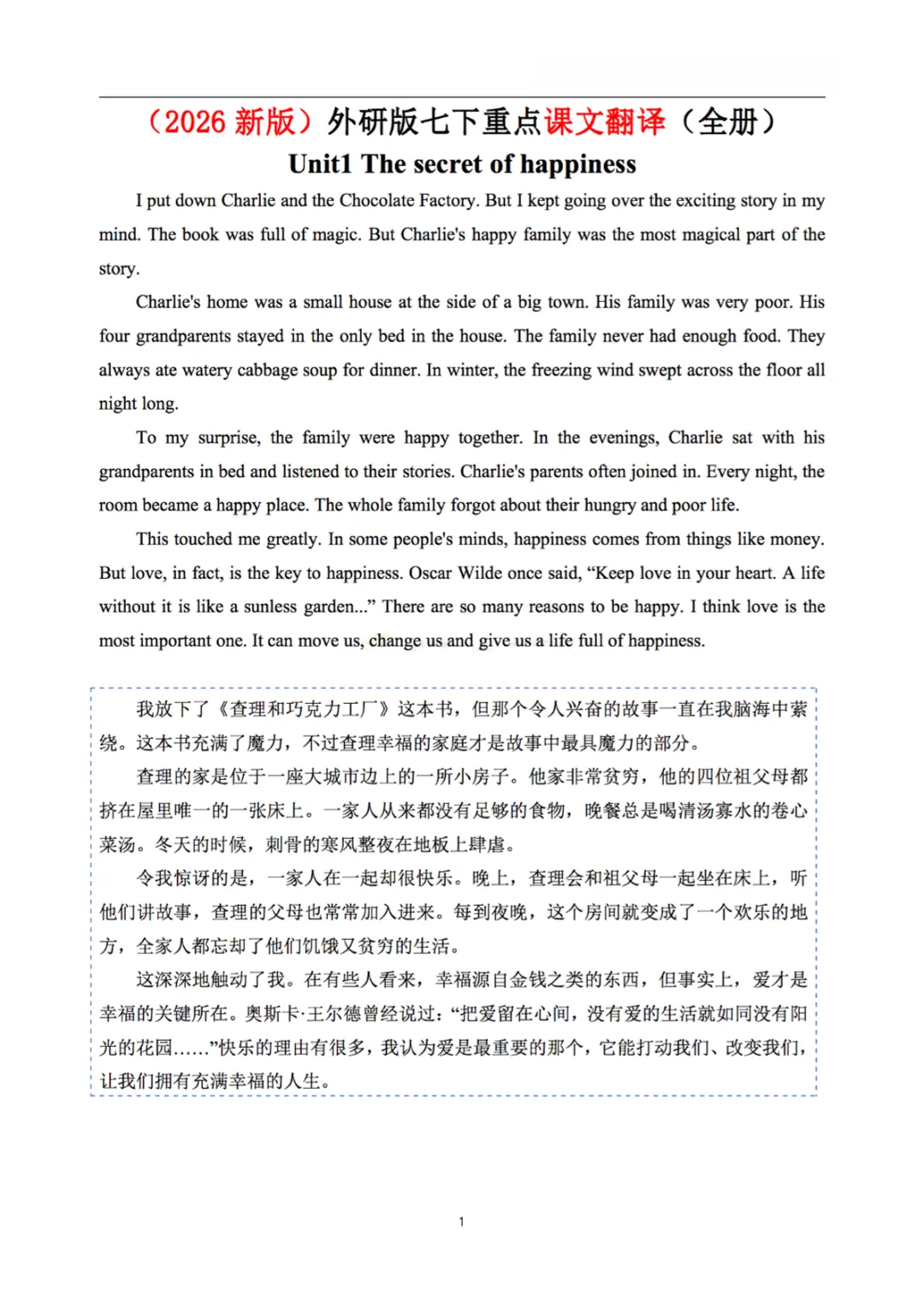 【免费下载】(2026)新版外研七下重点课文翻译(全册),可打印资源介绍(2026)新版外研七下重点课文翻译(全册)https://pan.baidu.com/s/1_k9x7U50d29ZkbahyFuwLA?pwd=8888复制网盘链接,微信发送给自己(文件传输助手,或者别人)可以直接打开链接,或者复制到浏览器打开,及时保存资源,以免资源失效!(温馨提示:全套教辅资源点击文末“阅读原文”可领取)重点:①:点一点右下角的“赞”和“在看”,感谢!如果对您有帮助,也可分享给别人!②:点击下面的”阅读原文”可直接跳转网盘链接。③:新人免费打印,点击立刻下单!④:关.注公众号,获取更多精彩内容,+V:1441237165,备注“教辅”领取更多教辅资料。