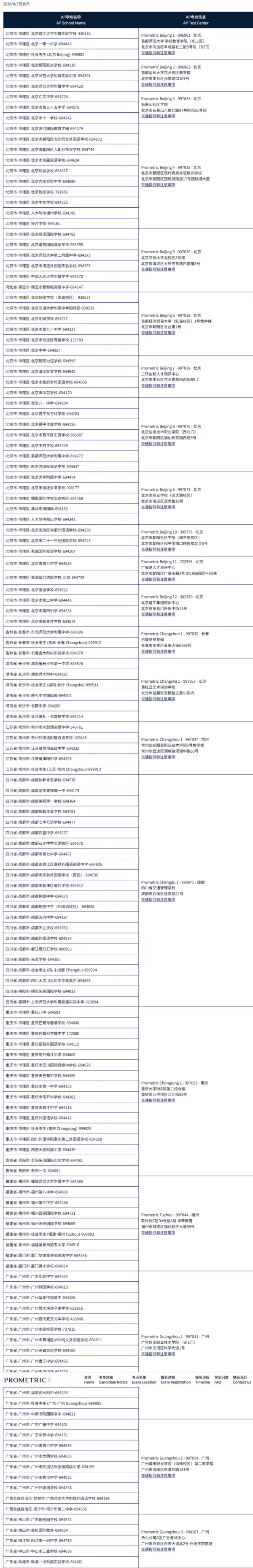 报考 2026 年 AP 考试的同学,记得对照考点名录确认考场,并提前规划好出行路线~