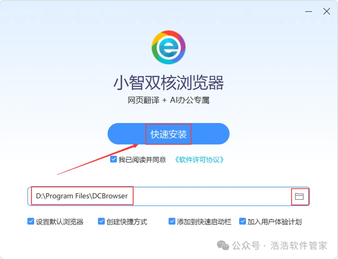 4、软件默认安装在C盘,可自定义更改软件安装位置,这里小编选择安装在D盘;点击【快速安装】