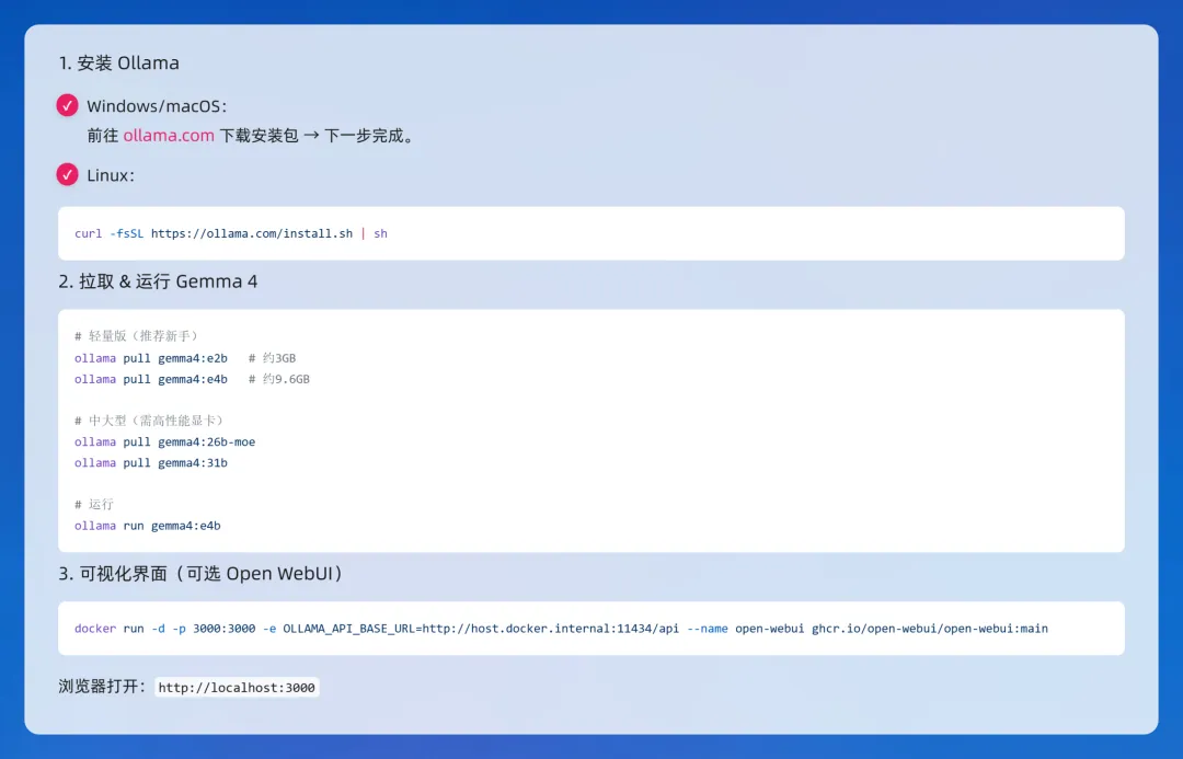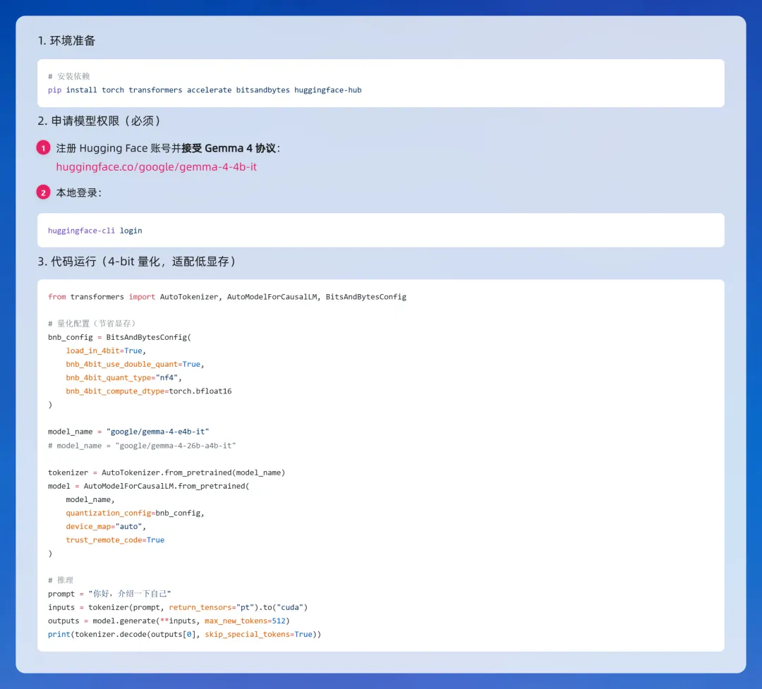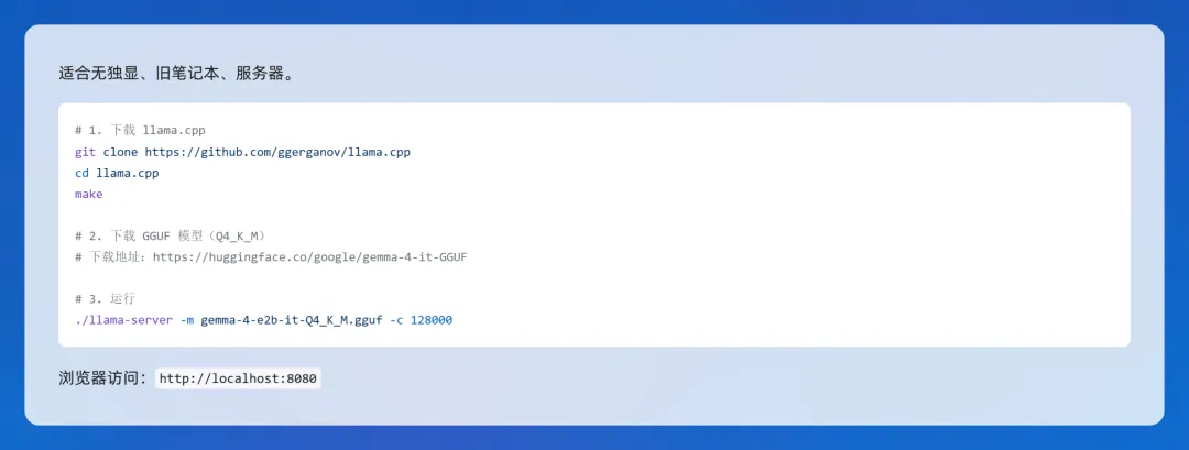 1. 轻量版(E2B / E4B:手机/入门电脑)