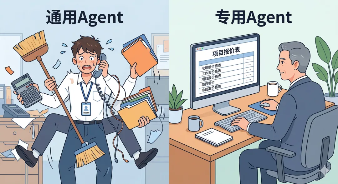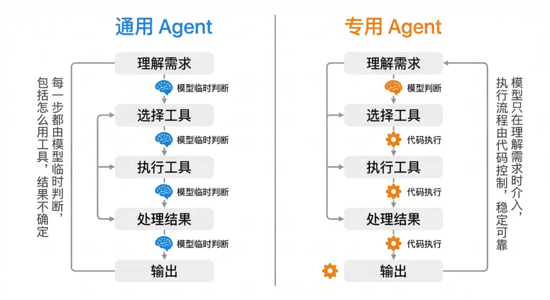 专用 Agent——专门为你的业务逻辑定制的,只干一件事,但稳定可靠。