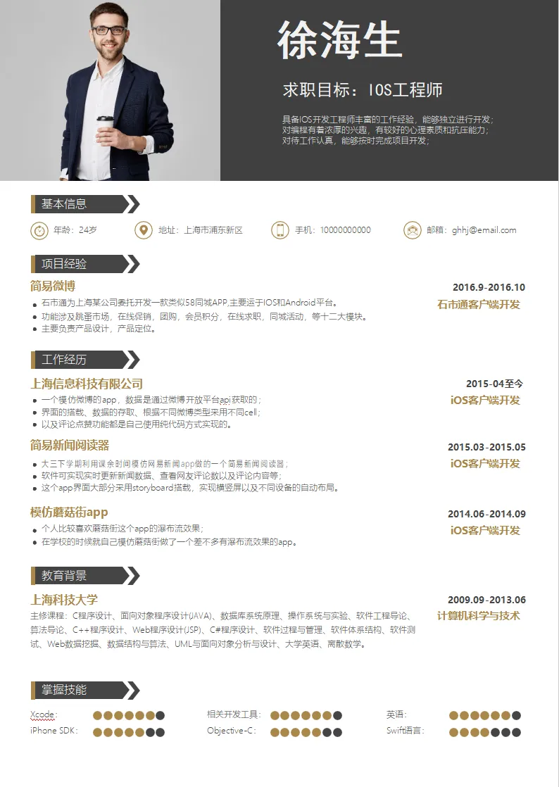 创意IOS工程师个人简历模板