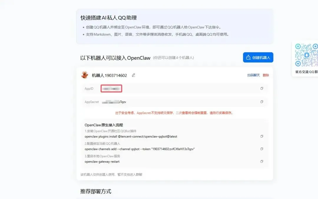 QQ扫码登录 → 创建机器人