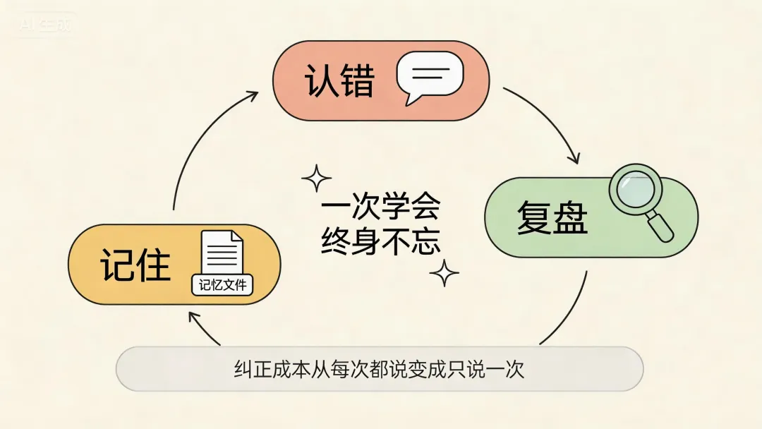 这个机制把纠正成本,从"每次都要重新说"变成了"只需要说一次"。