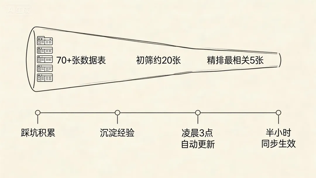 有人问:70多张表全塞给大模型不行吗?为什么要搞"先粗筛再精排"?