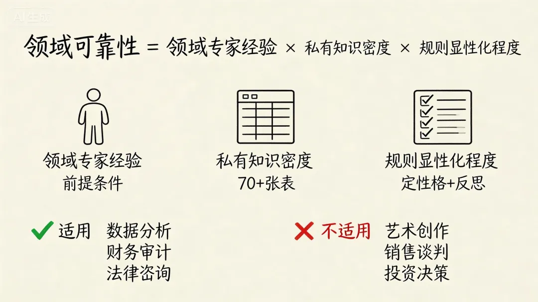 能:领域可靠性 = 私有知识密度 × 规则显性化程度。