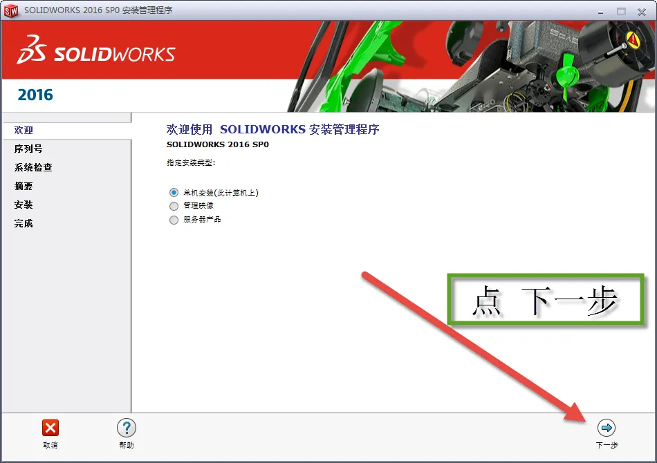 7.然后会弹出安装界面。选择“单机安装”,点击下一步。
