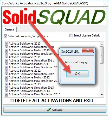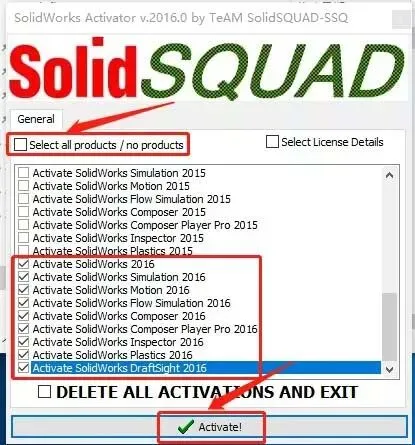 20.软件安装完成后可打开网络,也可不打开直接进行接下来的破解操作。打开破解文件夹中的“SW2010-2016.Activator.GUI.SSQ.exe”。打开后会出现如下图界面,点击按钮“√Activate”,此时会卡住一会,稍等片刻。