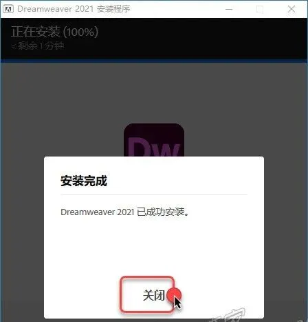 ☉9.安装成功,点击【关闭】。