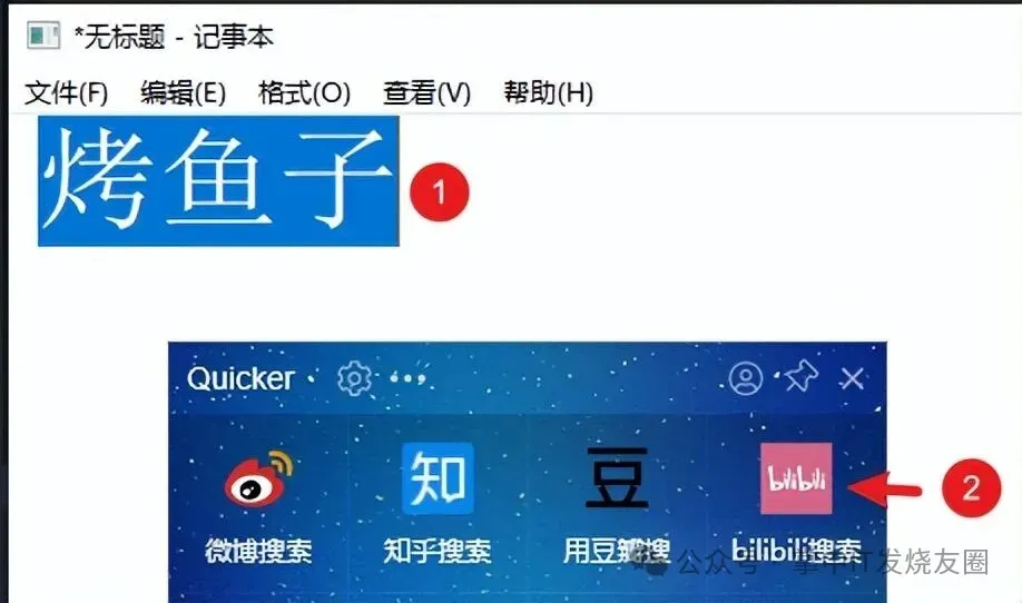 而有了Quicker之后,我只需选中关键词,按下鼠标中键(启动Quicker),选择对应的平台即可搜索。