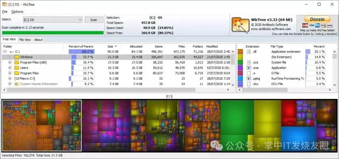 有了它之后,可以快速找出C盘里的那些大文件,你针对性进行删除即可解决电脑卡顿问题。