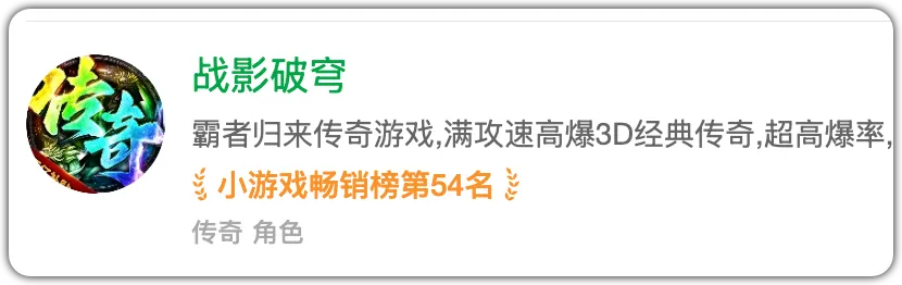 4、《战影破穹》 小五碎碎念:超高清传奇,三职业、上线领1万盲盒、满攻速,高爆率。10倍充值。