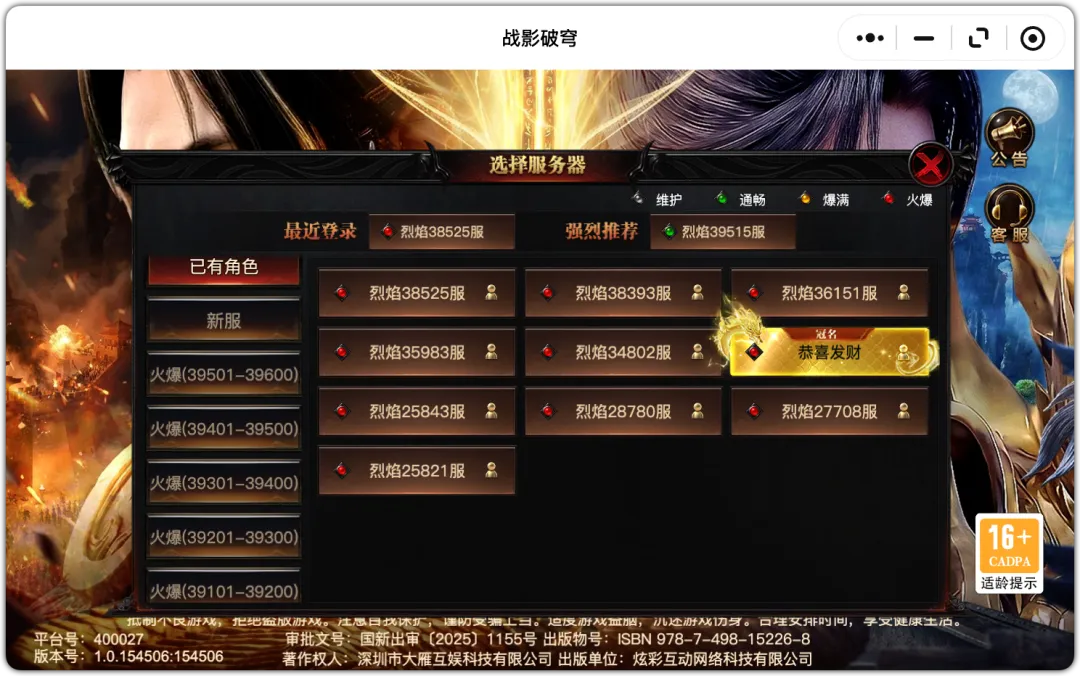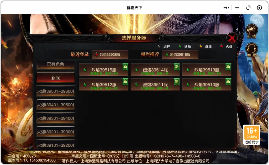 (昨日39293服,今日39515服,今日新开222服🔥)