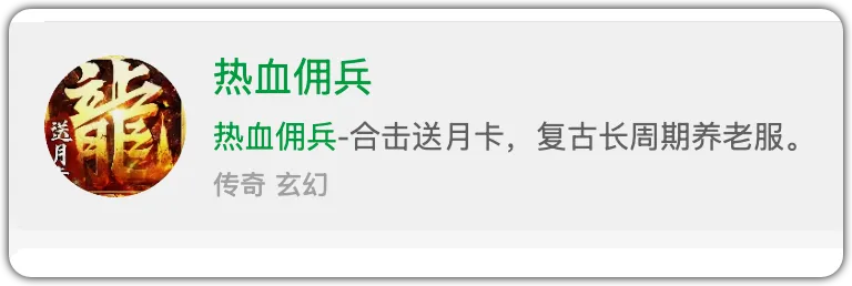 8、《热血佣兵》 小五碎碎念:养老传奇、合击送月卡、复古长周期、生态大服、三职业打金、千人同屏、物价稳定、自由交易、可搬、纯月卡畅玩!4月3日最新合服。
