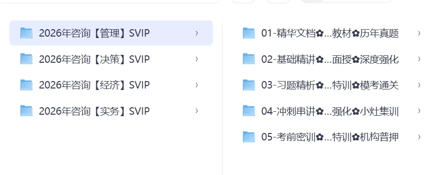 已为您整理2026年咨询工程师SVIP核心课程资源,包含管理、决策分析、宏观经济和实务四大模块。建议按以下备考顺序: