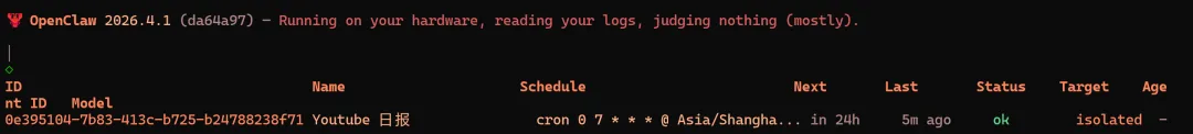 整体思路很简单:让 OpenClaw 每天定时从我关注的 YouTube 频道抓取最新视频,自动提取关键内容和摘要,然后统一写入 Notion。
