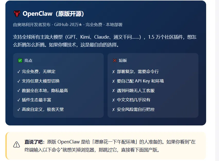 😡你是不是也遇到过这种情况: 打开 GitHub,OpenClaw 的 README 看了三行就想关掉;看各种推文说"国产版更好用",但 AutoClaw、KimiClaw、QClaw……根本不知道选哪个;最后还是在电脑上什么都没装,白白错过了这波 AI 生产力革命。