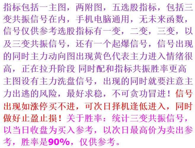 特别声明:指标公式仅作分享,模拟测试,不构成任何投资意见建议,不作投资依据,仅供粉丝朋友们学习交流之用,请勿用作法律禁止之外用途!若有侵权,请联系小编删帖,本公众号不承担任何责任,感谢大家的支持与厚爱。