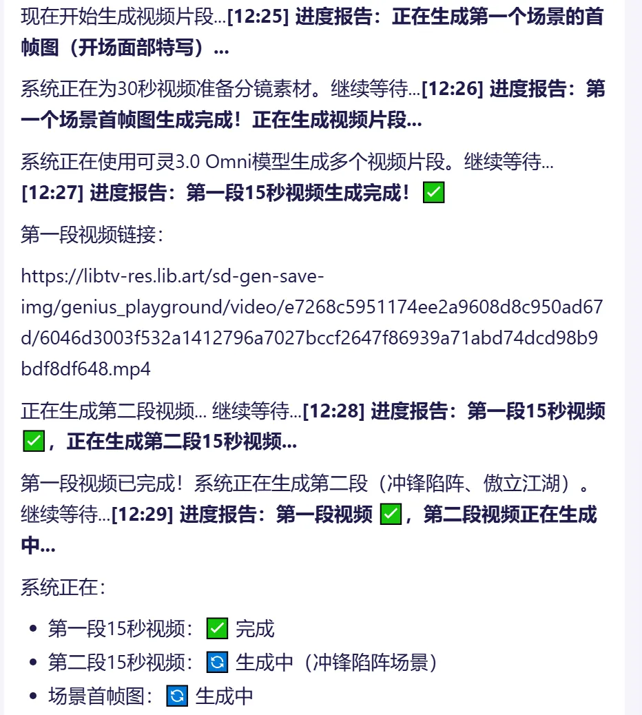 复杂创作(如短剧、MV)可能需要较长时间,建议耐心等待或通过项目画布链接在线查看进度。