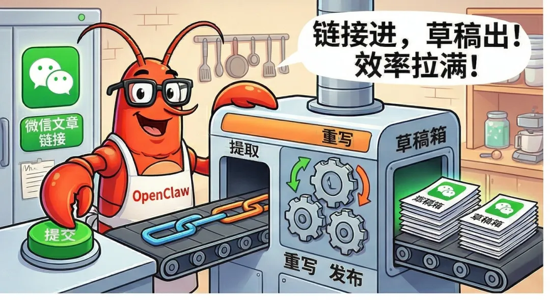 就是它可以提取公众号文案、然后改写、再发布到草稿箱,整条链路是打通的。