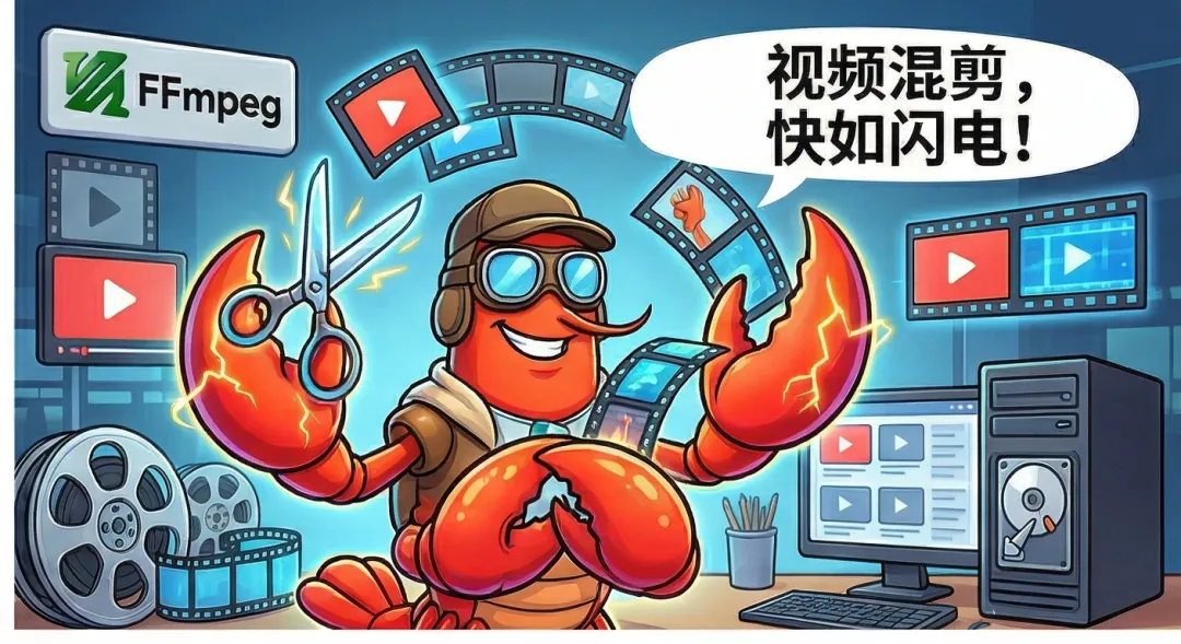 给它一个电脑上的视频路径,用 FFmpeg 做混剪,可以大幅提升做视频的效率。