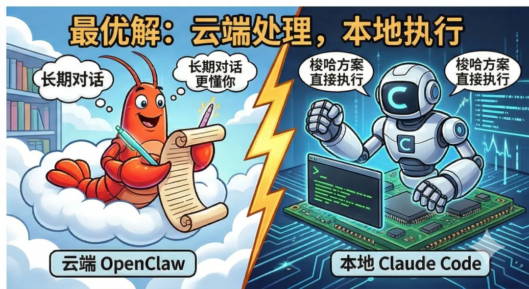 最优解是:云端用 OpenClaw,本地用 Claude Code。