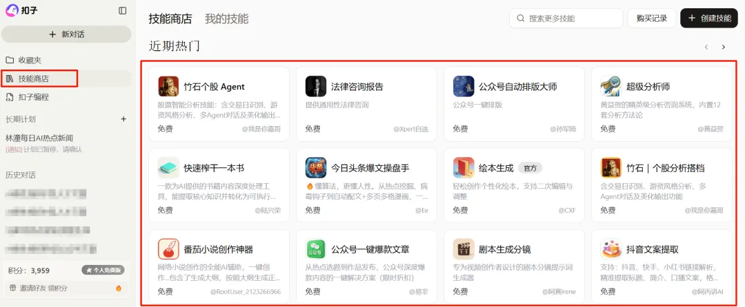 作为常用的智能体平台,Coze的Skill涵盖了文案生成、数据统计、图片处理等多种功能,小白也能轻松调用