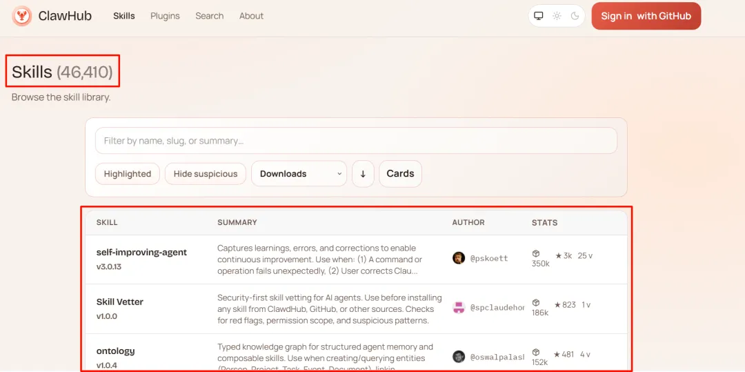 再给大家看一眼OpenClaw官方的Skill——目前已经更新到46410个了,可见Skill的重要性和丰富度。