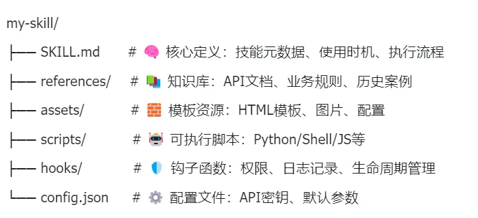 那么问题来了:一个Skill里面到底装了些什么?它的“内部构造”长什么样?