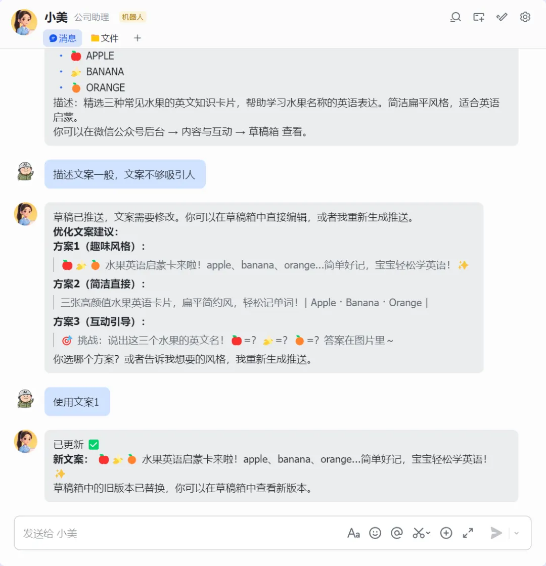 技能安装完,大模型配置好之后,就可根据自己的要求让openclaw制作贴图笔记并上传到草稿箱了有了openclaw,我们就可以实现“君子动口不动手”了对笔记满意后,直接在公众号助手点击“发布”就完事儿了,便捷多了。