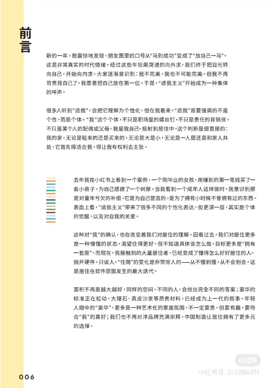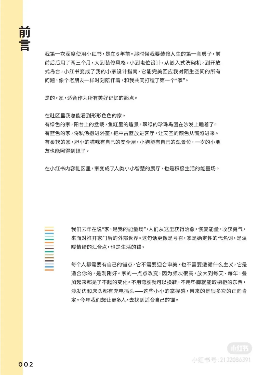 我第一次深度使用小红书,是在6年前。那时候我要装修人生的第一套房子,前前后用了两三个月,大到装修风格,小到电位设计,从嵌入式洗碗机,到开放式岛台,小红书变成了我的小家设计指南,它能完美回应我对陌生空间的所有问题,像个老朋友一样时刻陪伴着,和我共同打造了第一个家"。