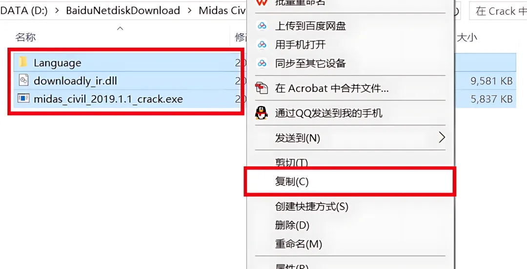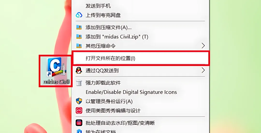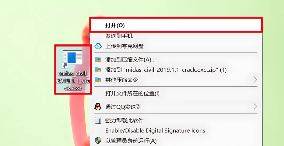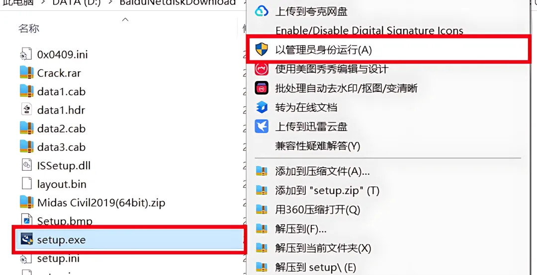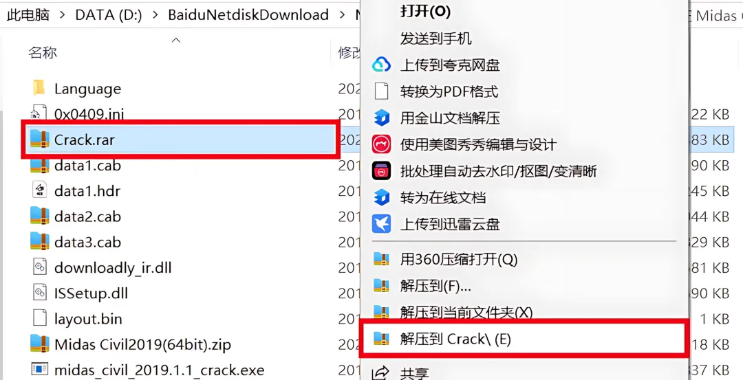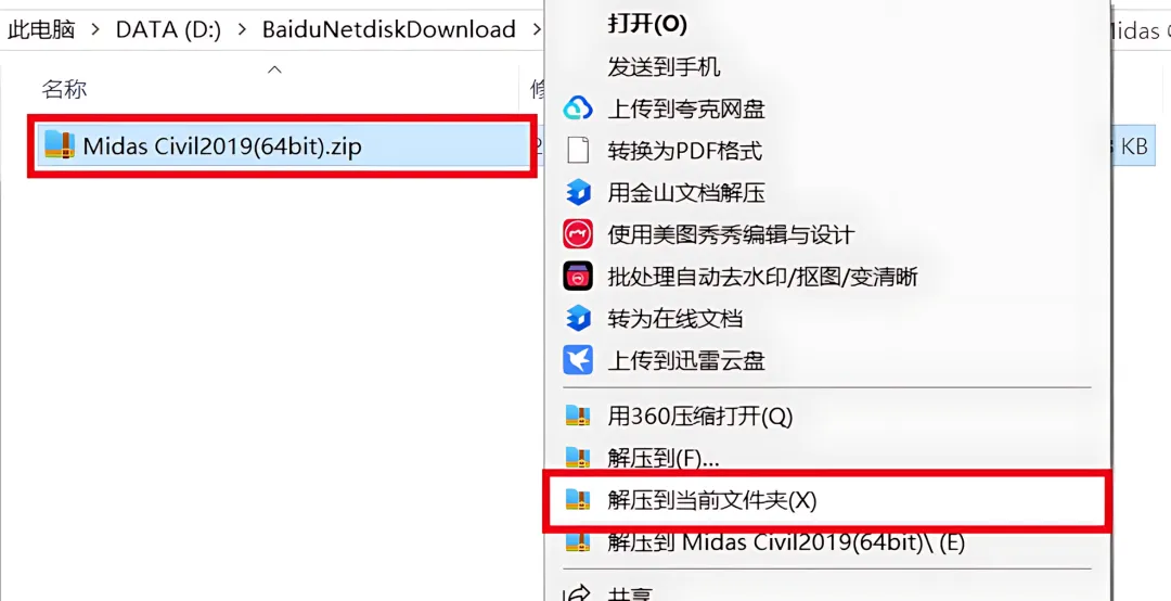 1.下载Midas Civil 2019软件安装包到电脑上,右键选择【解压到当前文件夹】。