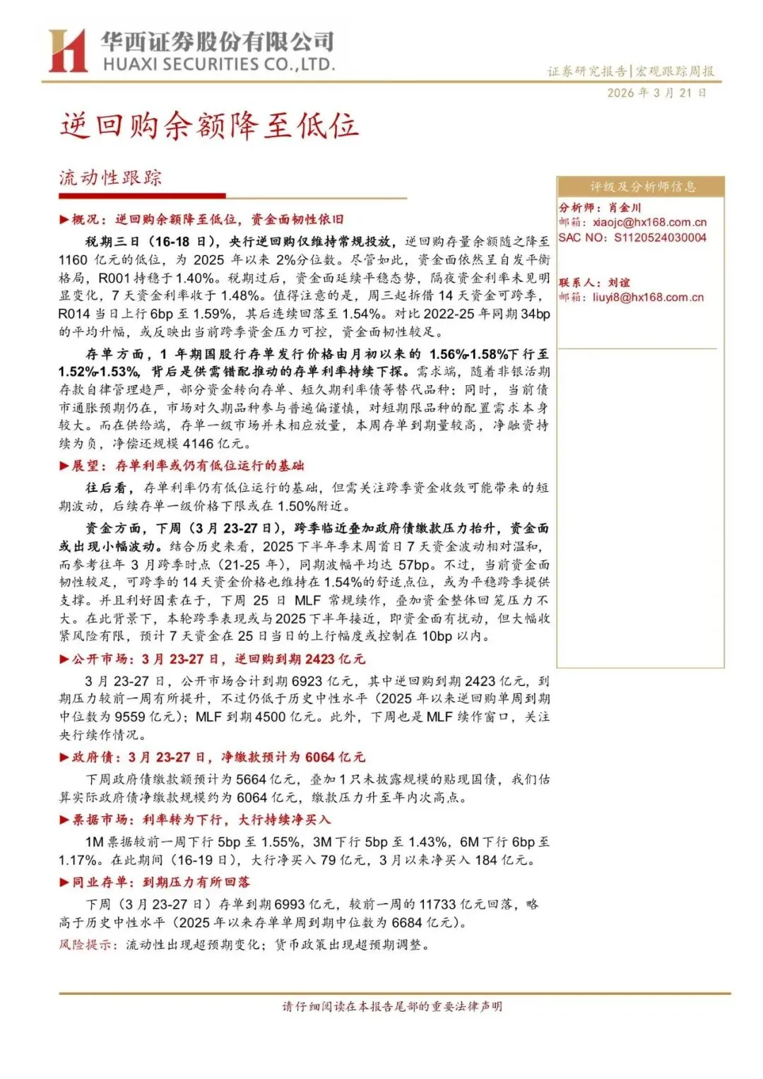 流动性跟踪:逆回购余额降至低位-260321-华西证券-16页