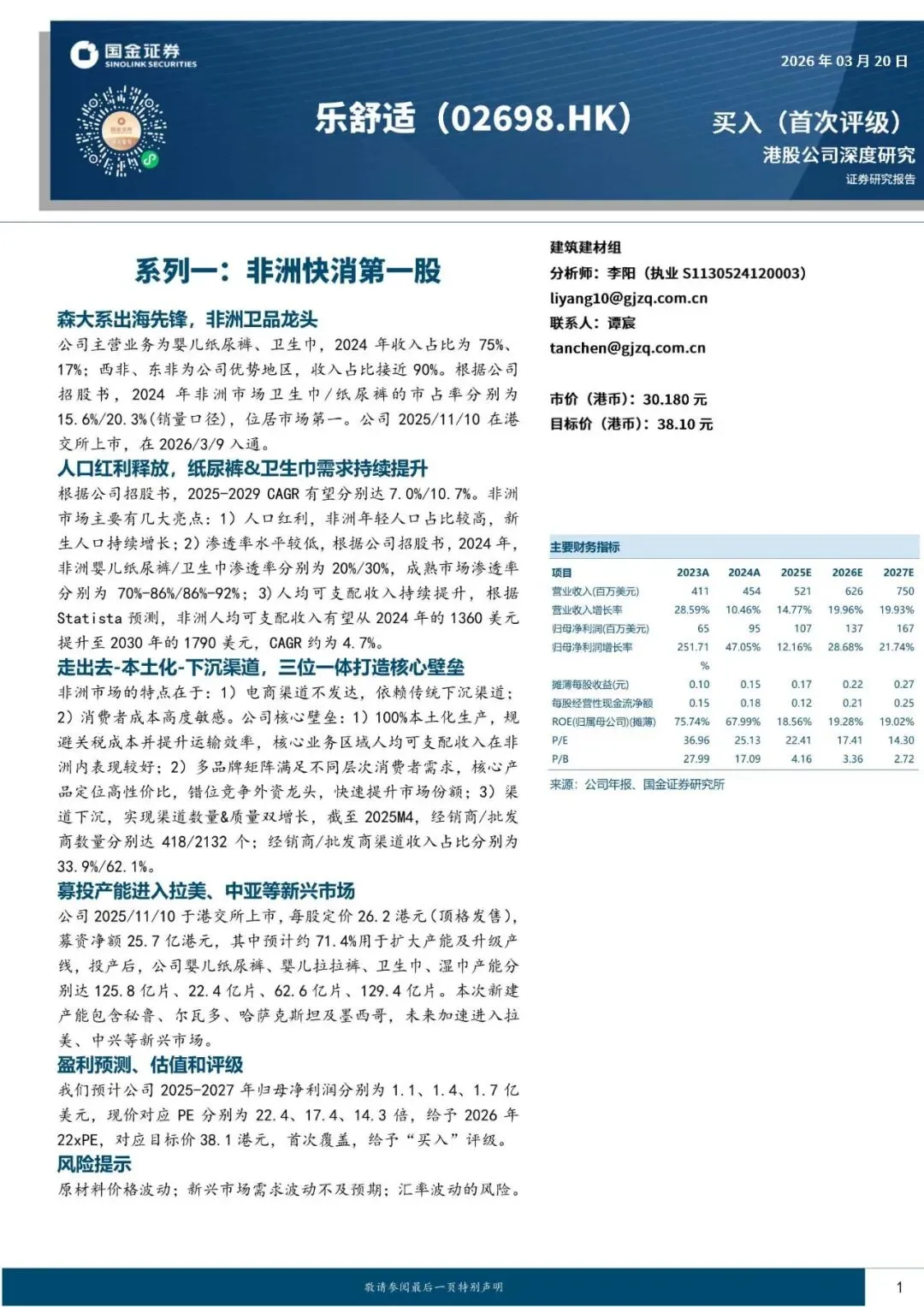 回复暗号:乐舒适(02698.HK)系列一:非洲快消第一股-260320-国金证券-18页