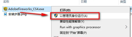 2.选中AdobeFireworks_CS4,鼠标右键选择“以管理员身份运行”