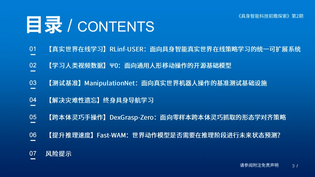 本期核心关注真实世界在线学习、学习利用人类视频数据、跨本体灵巧手操作、提升推理速度等六大前沿进展
