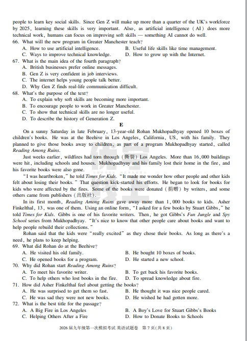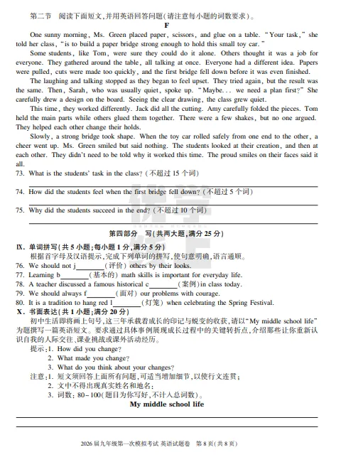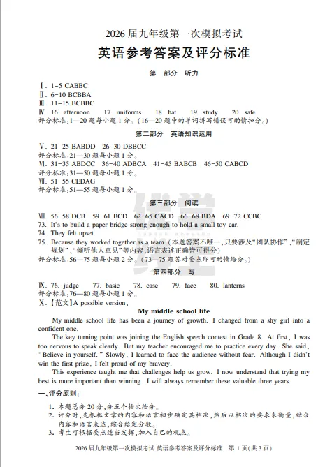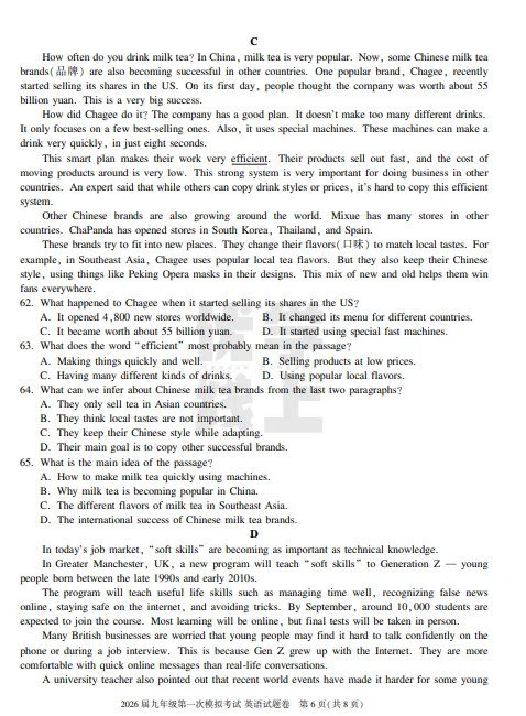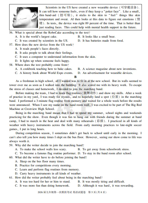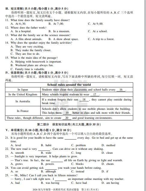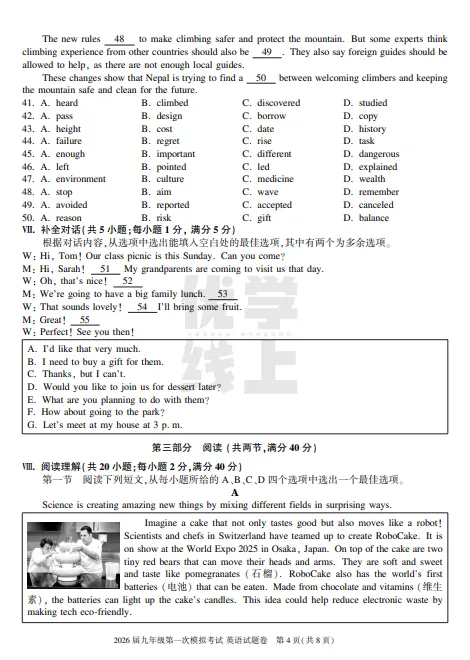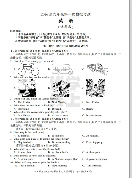 ●上海市2026届宝山区初三一模英语试题和答案解析(附听力音频+听力文稿)