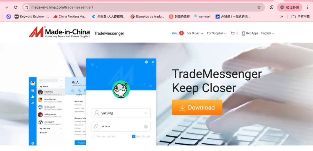 定位:外贸业务移动办公助手,可随时随地处理询盘、采购需求、在线洽谈。 功能:接收/回复询盘、TradeMessenger在线沟通、查看平台活动与资讯。 下载方式:Virtual Office后台扫码下载