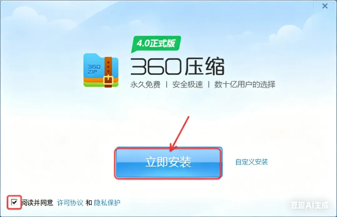 2.勾选【阅读并同意】,点击【立即安装】。
