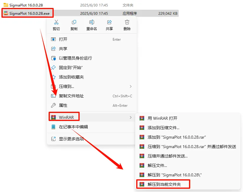1.选中下载的压缩包,然后鼠标右键选择“解压到当前文件夹”(列表中没有解压选项点这里)