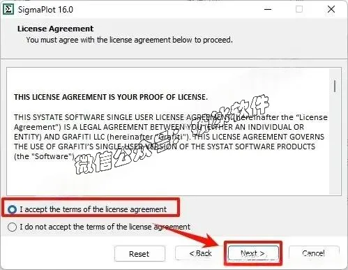 4.选择“I accept the terms of the license agreement”,点击”Next”