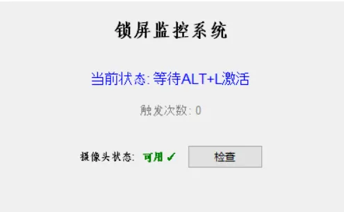 离开电脑时,按下快捷键 ALT+L 即可激活监控模式,在监控模式下只要动了鼠标或键盘,电脑就会立刻锁屏并拍照保存。