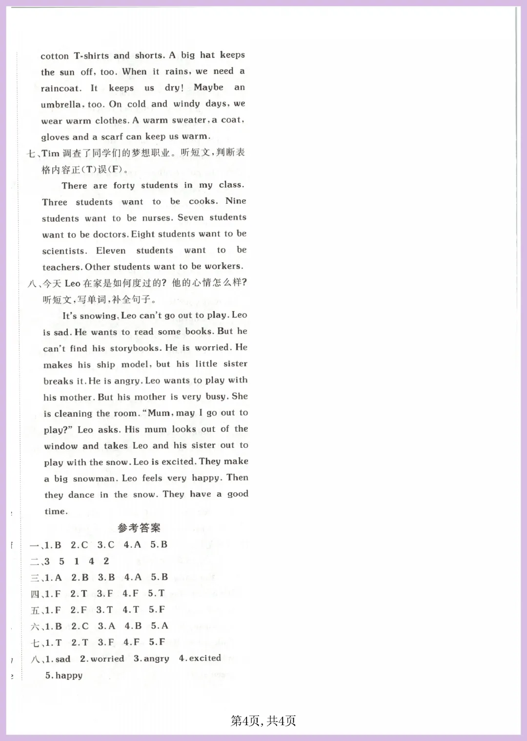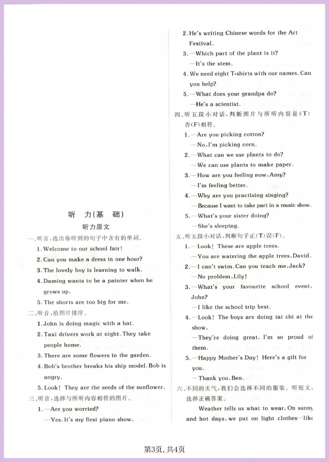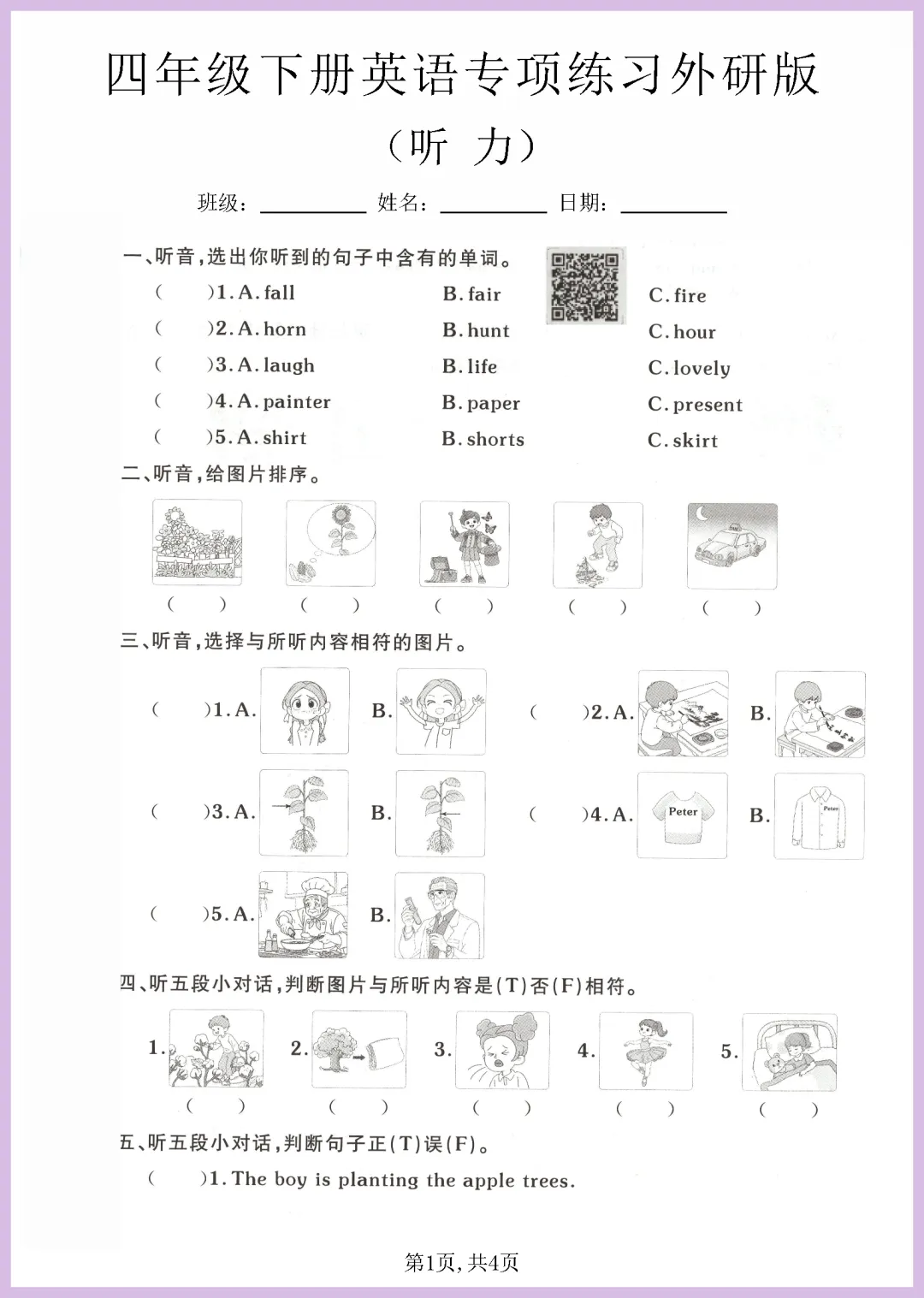 各位家长看过来!这份 2024 年外研版四年级下册英语听力专项练习来啦,共 4 页精编内容。资料紧扣教材重点,涵盖日常对话、短文理解等核心题型,能有效帮助孩子磨耳朵、抓关键词,轻松攻克听力难关,提升做题准确率与自信心。每天练一练,进步看得见!资源免费分享,需要的家长赶紧下载打印,让孩子趁热打铁练起来吧!