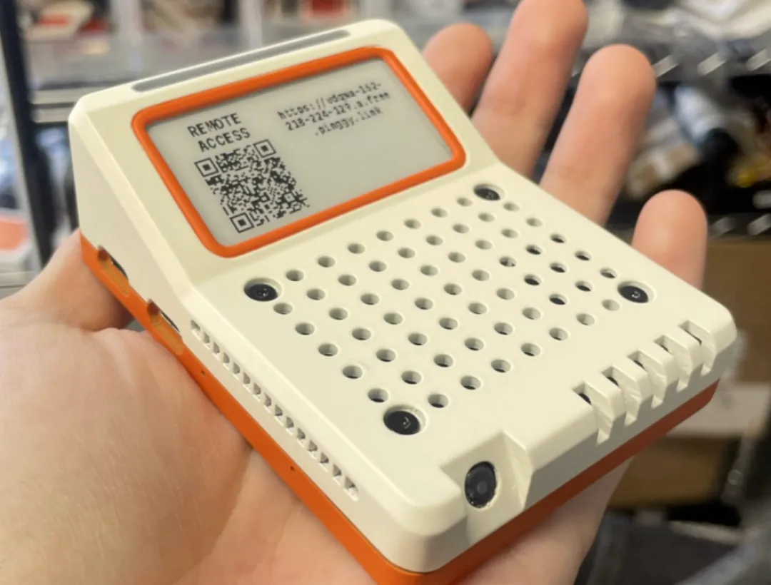 这台设备售价250美元(约合人民币1700元),核心计算模块基于树莓派CM5,配备8GB内存、64GB存储,并集成了墨水屏、麦克风、扬声器、摄像头,整体尺寸比手机还小,扫描墨水屏上的二维码即可进入交互界面,与一个名为Pamir的Agent对话。