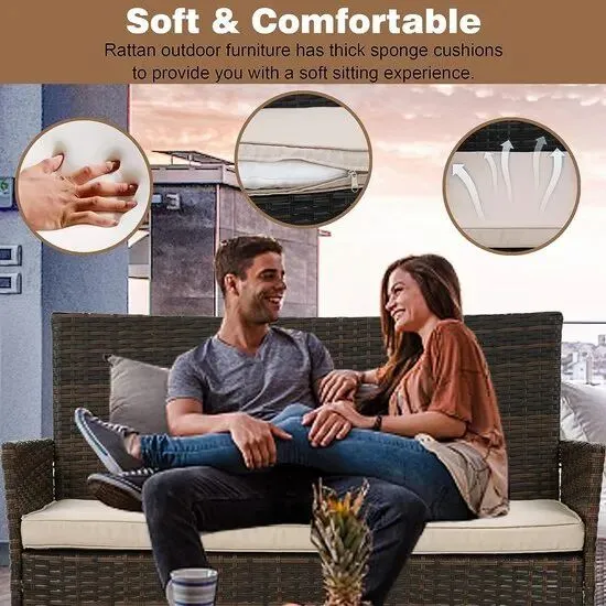 BestOffice 庭院软垫藤条沙发+茶几4件套6.8折 199.99加元包邮!