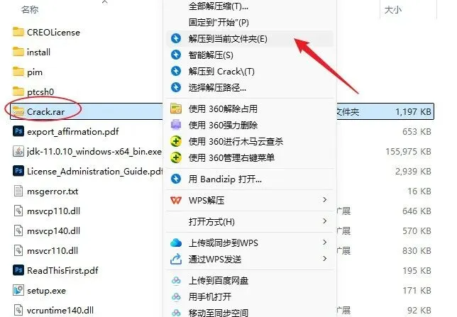 3.鼠标右击【Crack】选择【解压到当前文件夹】。