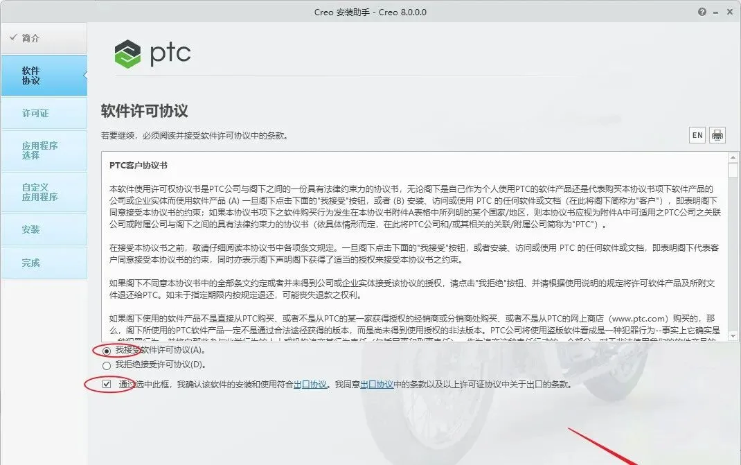 14.选择【我接受软件许可协议(A)】,勾选【通过选中此框……】,然后点击【下一步】。