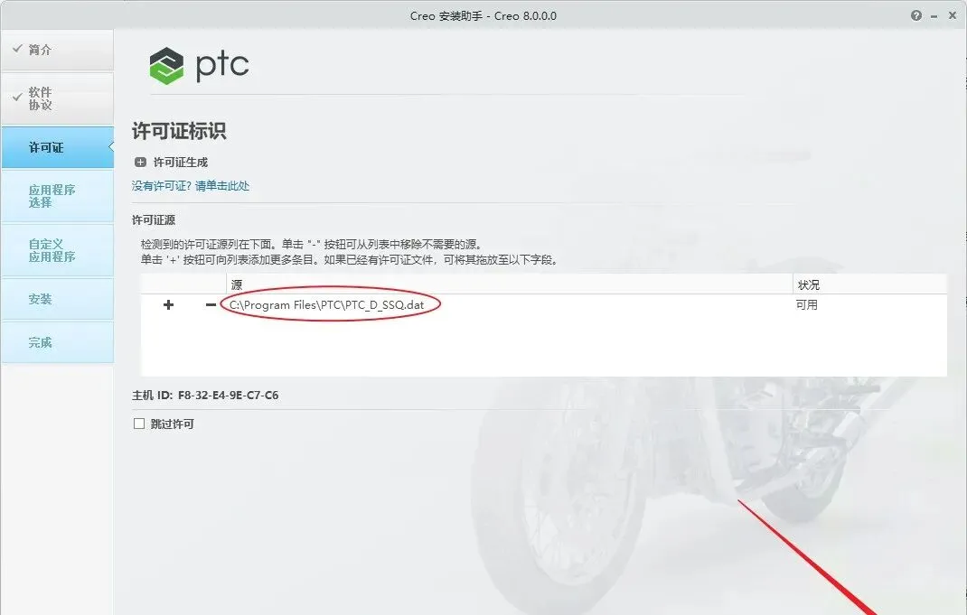 15.系统自动识别步骤7生成的证书(若无法识别可手动选择:C:\ProgramFiles\PTC\PTC_D_SSQ.dat),然后点击【下一步】。